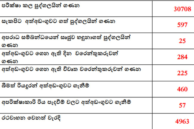 මේ අතර අත්අඩංගුවට ගත් බීමත් රියදුරන් ගණන 460ක් වන අතර අපරික්ෂාකාරී ලෙස රිය පැදවීම් සම්බන්ධයෙන් 57 දෙනෙකු අත්අඩංගුවට ගෙන තිබේ.