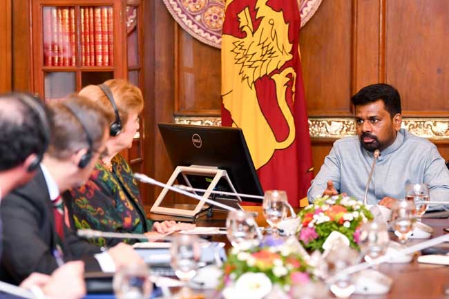 මෙරට තෙදින සංචාරයක නිරත ජාත්යන්තර මූල්ය අරමුදල කළමනාකාර අධ්යක්ෂ ක්රිස්ටලිනා ජෝර්ජියේවා මහත්මිය ඇතුළු නියෝජත පිරිස සමඟ අද (17) පෙරවරුවේ ජනාධිපති කාර්යාලයේදී සාකච්ඡාවක් පැවැත්විණි.