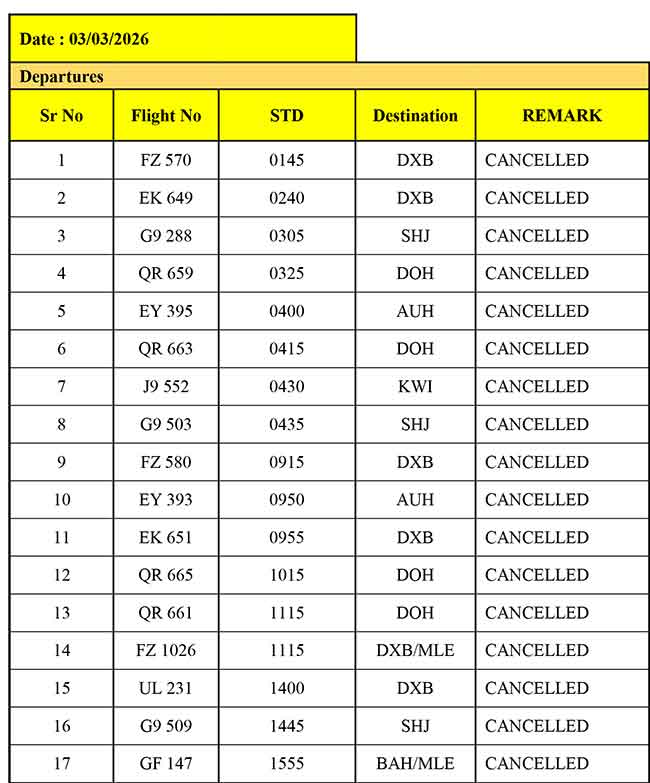 මේ අතර හෙට (04) දිනේය දී ද ගුවන් ගමන්වාර 4ක් අවලංගු කර තිබේ.
