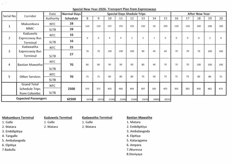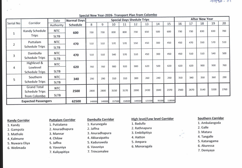 අලුත් අවුරුද්දට විශේෂ ප්‍රවාහන සැළැස්මක්